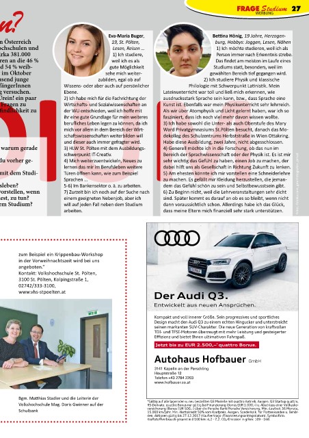 2) Was studierst Du und warum gerade 3) HLW St. Pölten mit dem Ausbildungs- 4) Generell möchte ich in die Forschung, ob das nun im