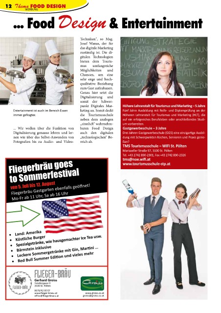 Entertainment ist auch im Bereich Essen keting an. Somit deckt Fünf Jahre Ausbildung mit Reife- und Diplomprüfung an der