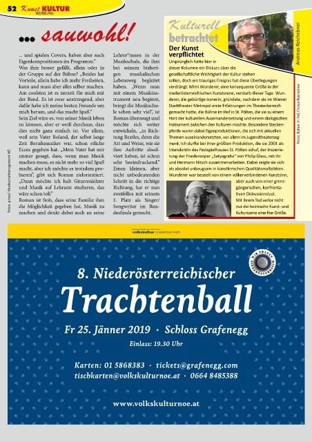 Fotos: privat/ Musikschulmanagement NÖ macht, aber ich möchte es trotzdem pro- Einen kleinen, aber als absolut unbeugsam in künstlerischen Qualitätsmaßstäben.